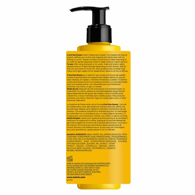 MATRIX: Total Results A Curl Can Dream Light Hold Gel a Curl Can Dream Light-Hold Gel for curls and coils, infused with Manuka honey extract. A defining gel that layers perfectly over Moisturizing Cream, without flaking or crunch. Free of silicones, sulfates, parabens, mineral oils, petrolatum and paraffins.