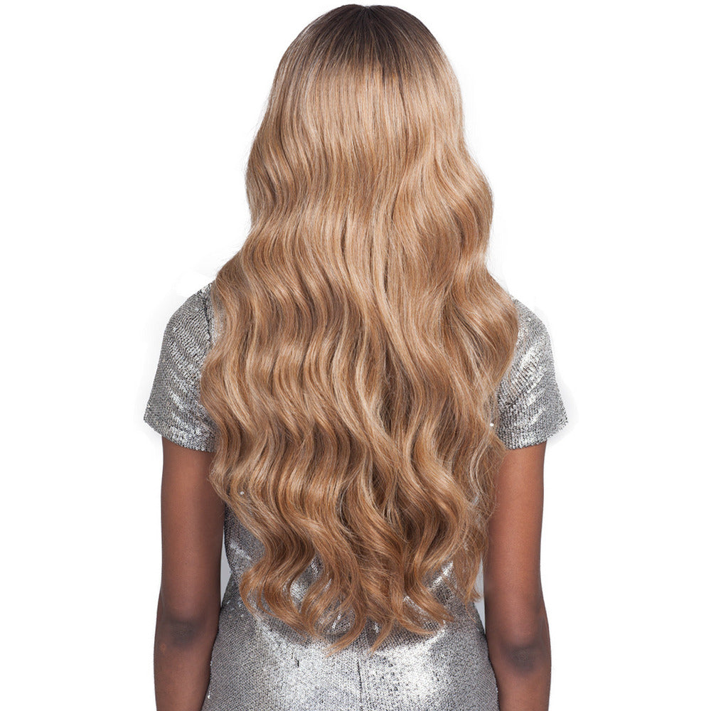 Bobbi Boss Synthetic and Human Blended Wig 13x4 Lace Front Wig - MBLF190 Carmela is a loose wave 28" style wig with a ear to ear parting space.