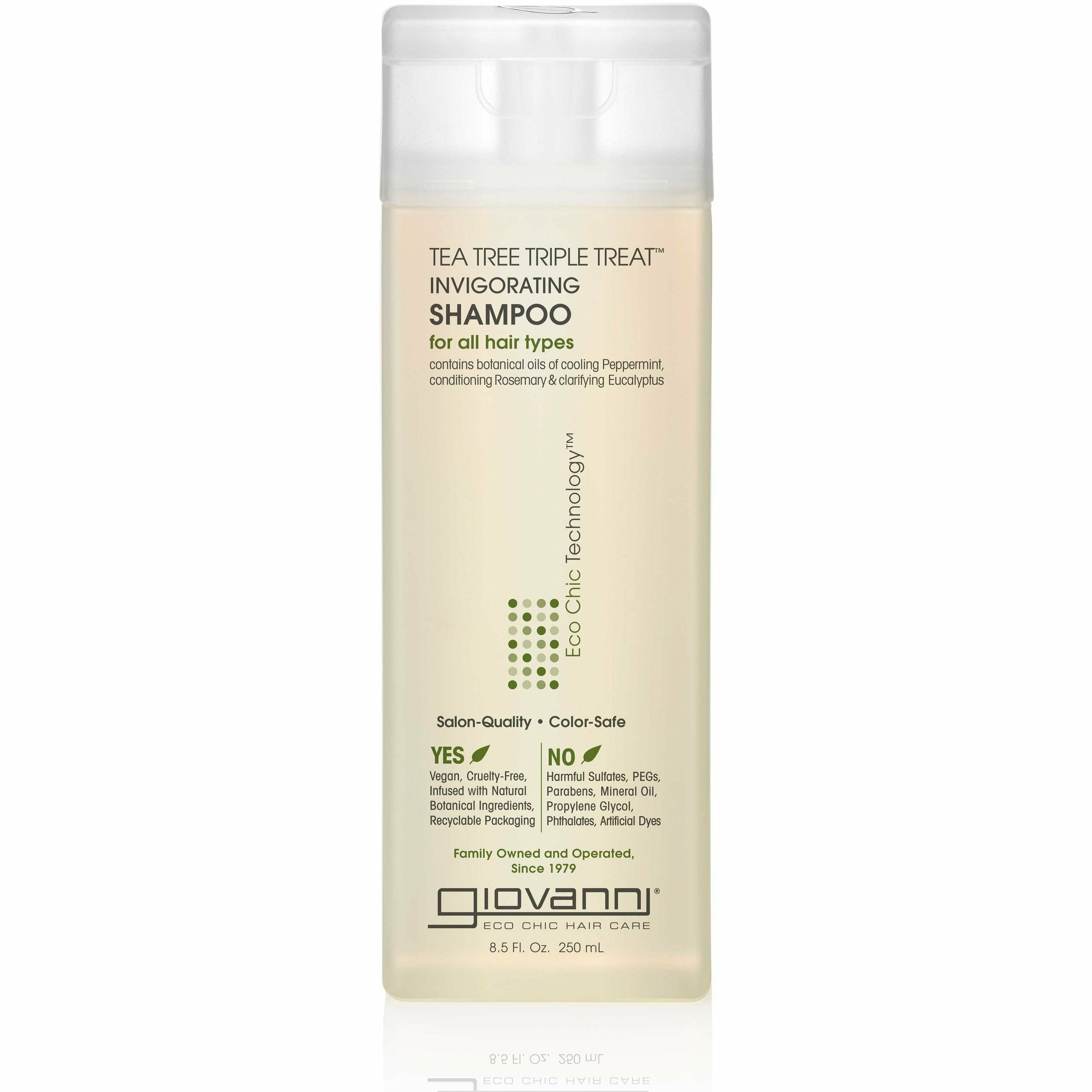 With Giovanni Tea Tree Triple Treat Invigorating Shampoo,its ingredients rejuvenate each tress while washing away the previous day. You’re left with something rich, something clean, something incredibly stimulating for hair and mind. Think about it.
