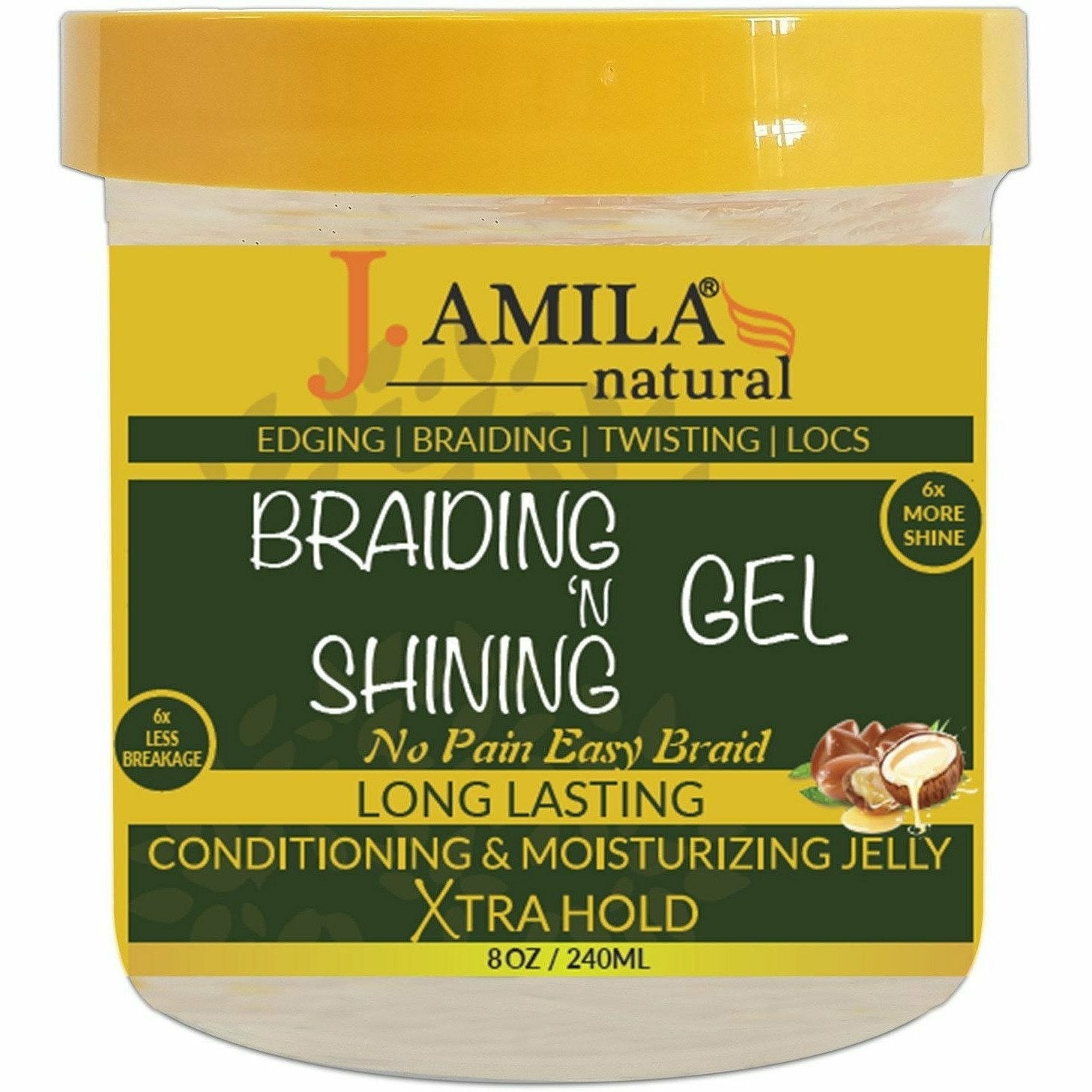 J.AMILA Braiding ‘N Shine Gel exclusively for Braiders which has the highest quality ingredients. J.AMILA Braiding ‘N Shine Gel is a product designed to work on any hair texture to achieve multiple styles such as braids, ponytail, locs, twist to control any hair style.