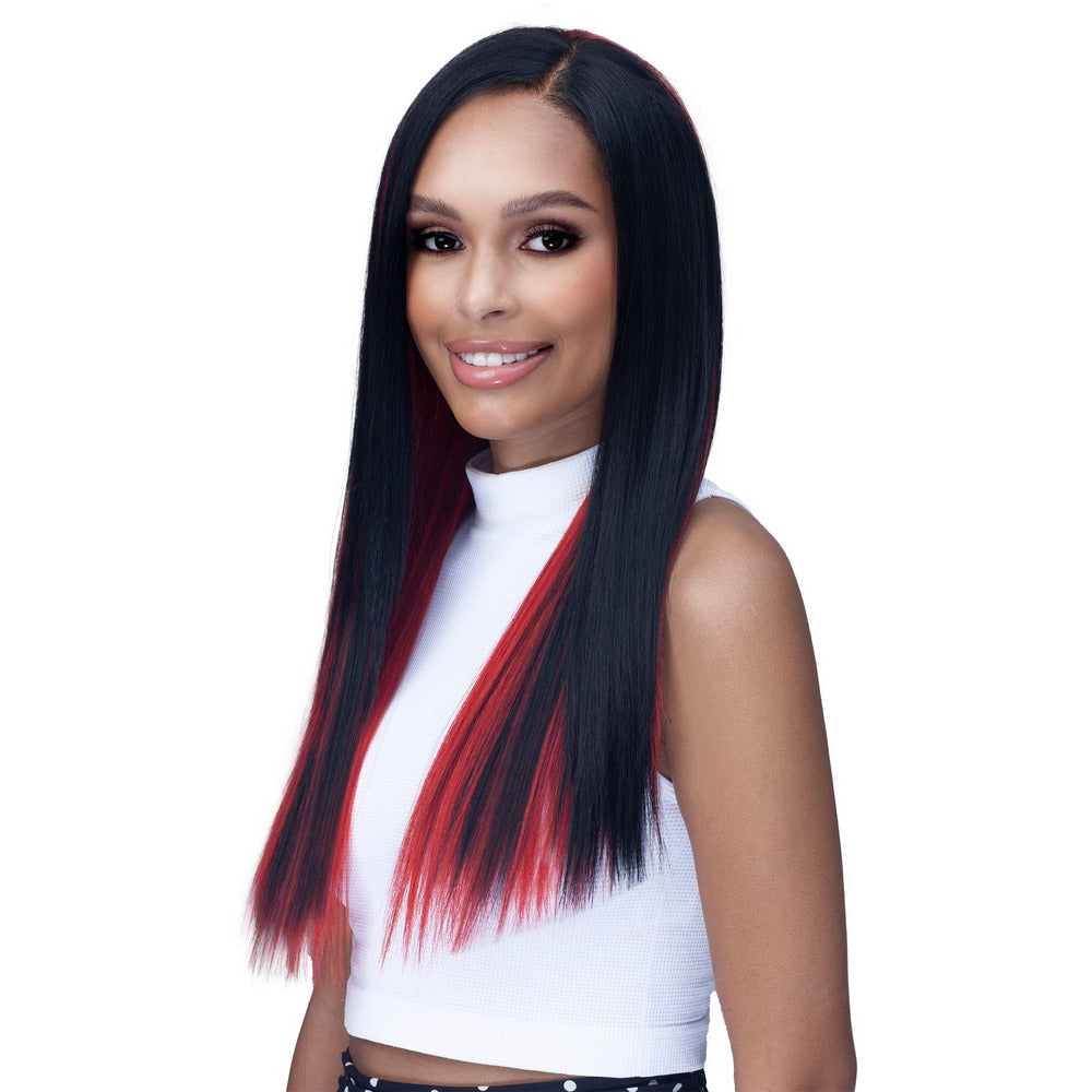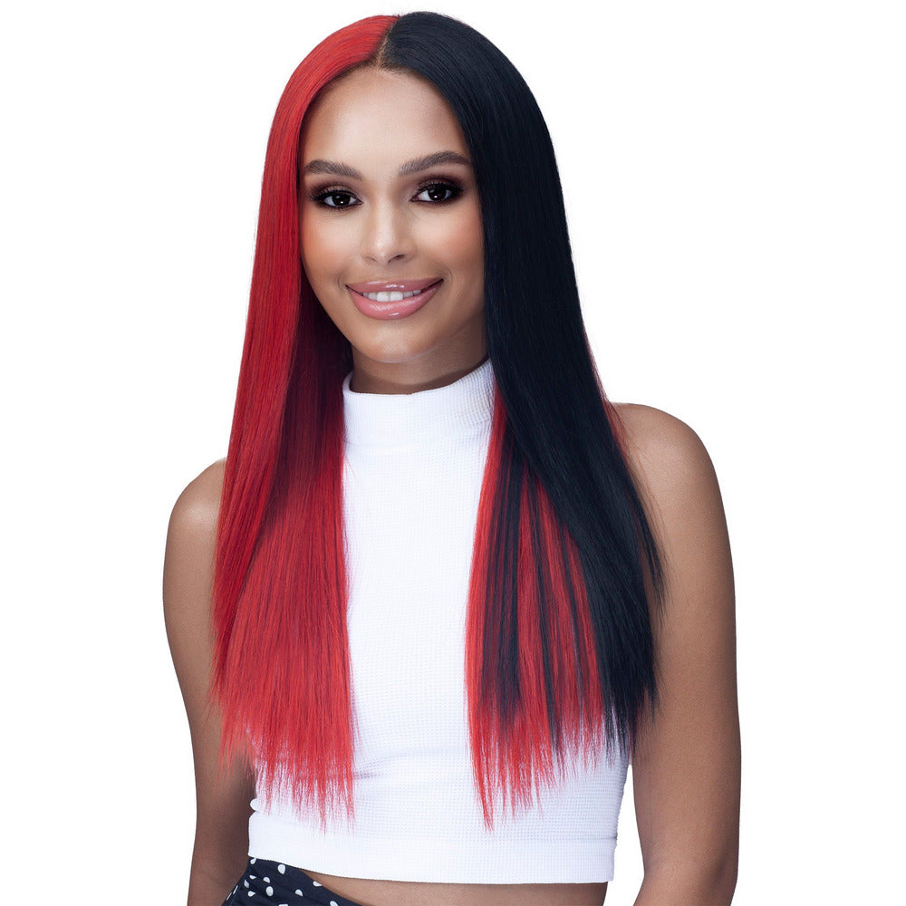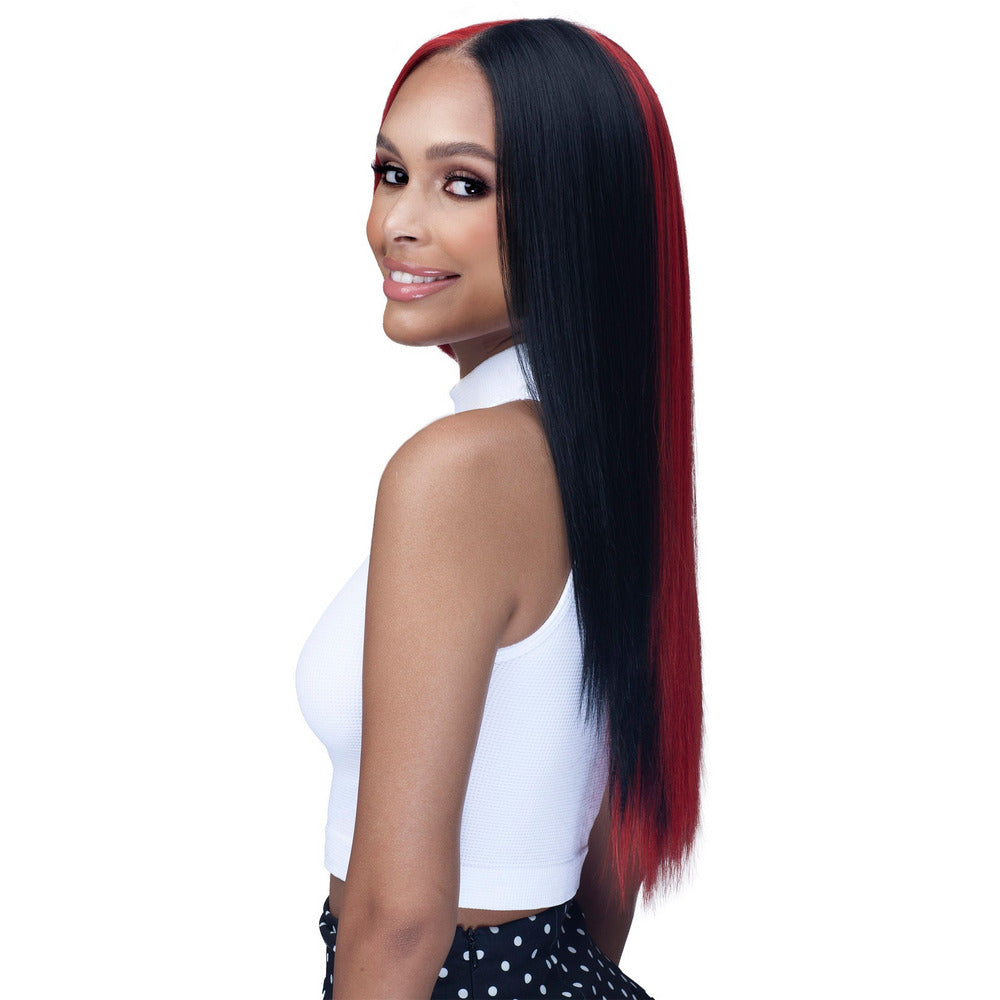 13X4 HD LACE FREE PARTING PRE-PLUCKED FRAICHE BABY HAIR FLEXFIT HIGH HEAT Color Shown: #HH1B/RED