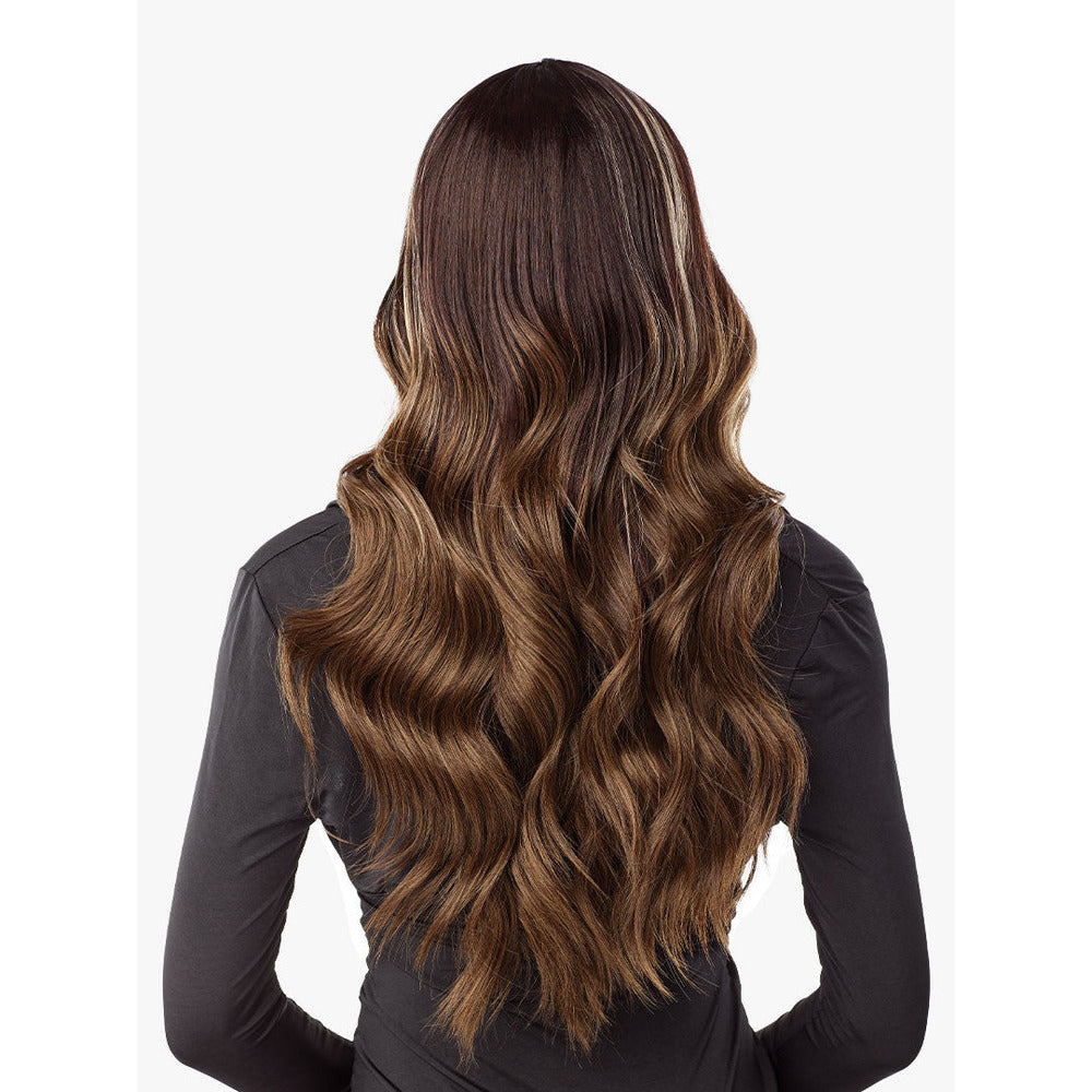 Lightly layered curls that start straight and tighter at the middle
